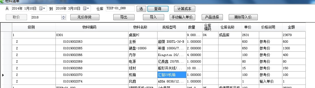 從用友的提取產(chǎn)品BOM,逐級展開到*末級材料,然后從價格庫中提取單價,卷積運算到每個層次的成本,按順序由低層到高層完成所有成本BOM層次的標(biāo)準(zhǔn)成本計算。