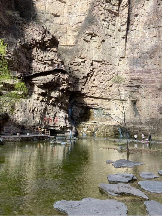 27日早上在公司集合后,大家乘坐大巴車經(jīng)過三個(gè)小時(shí)的行程,到達(dá)了太行大峽谷景區(qū)。入住酒店及午餐后,首先游覽了有太行魂之稱的王相巖景區(qū)。王相巖景區(qū)自唐以來(lái),享有盛名,景區(qū)東臨溪水,西依懸崖,左右兩側(cè)峭壁環(huán)繞,形成了一個(gè)閉合性極強(qiáng)的圍谷,暗合中國(guó)古代風(fēng)水學(xué)“左青龍、右白虎、前朱雀、后玄武”的理想模式,吸引了歷代名人雅士來(lái)此修身隱居。在攀爬過程中,陡峭、曲徑隨處可見。大家一方面驚嘆大自然的巧奪天工,一方面感受大自然的美。